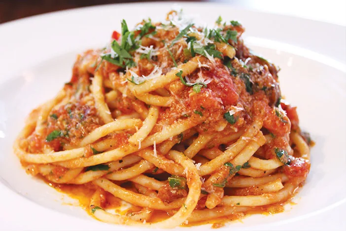 bucatini amatriciana Save Print bucatini amatriciana Ingredients 180g Dei Campi Bucatini (cooked) 2 oz Alfredo Cetrone Intenso Extra virgin olive oil 3 tbsp...