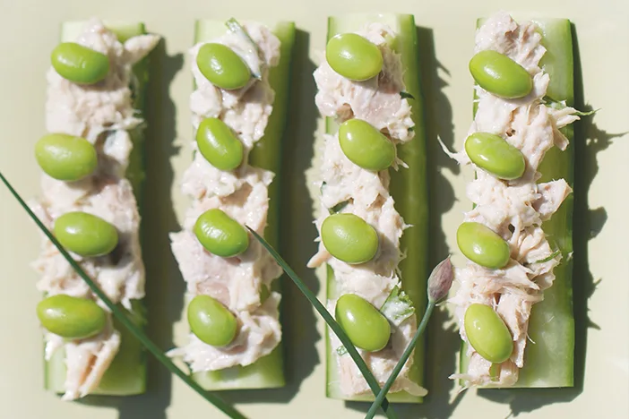 tuna-stuffed mini cucumber canoes Save Print tuna-stuffed mini cucumber canoes Author: Chef D. Brown Yields: 4 portions Approx. prep time: 15 min Ingredients 6 Village Farms mini...