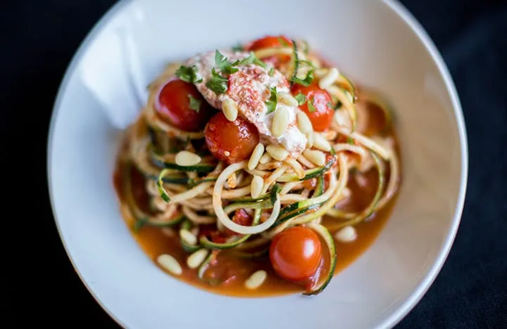 zucchini noodles with crudo sauce Save Print zucchini “spaghettini” Author: Chef D. Brown Yields: 4 portions Ingredients 1 lb Village Farms cherry no. 9 fall in love again®...