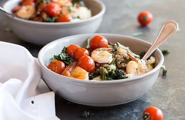 shrimp & cherry tomatoes over cauliflower grits Save Print shrimp and cherry tomatoes over cheesy cauliflower grits Author: Kristina LaRue, RD - Love & Zest Prep time: 30 mins Total...