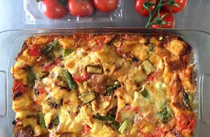 tomato, asparagus, and leek strata Save Print tomato, asparagus, and leek strata Author: Diana Pittet Prep time: 20 mins Cook time: 45 mins Total time: 1 hour 5...