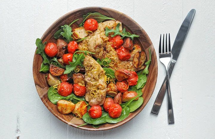 One Pan Roasted Tomatoes, Chicken & Potatoes With Le... Save Print One Pan Roasted Cherry No.9 Fall in Love Again® Tomatoes, Chicken & Potatoes with Lemon Salad Author: Lunches + Littles Prep...