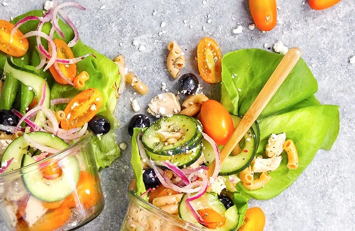 Greek Mason Jar Salad Save Print Greek Mason Jar Salad Author: Lunches and Littles Yields: 4 Ingredients 1 box (8 oz) lentil elbow noodles, or pasta of...