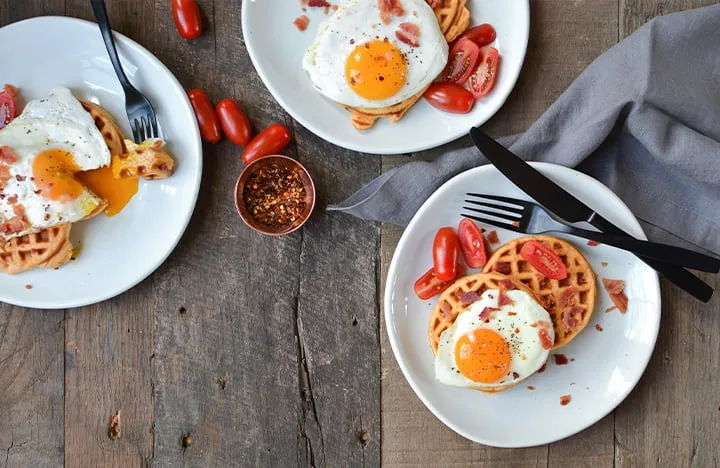 Savory Tomato Waffles Save Print Savory Tomato Waffles Author: Nosh and Nourish Prep time: 15 mins Cook time: 15 mins Total time: 30 mins Yields: 10 Waffles...