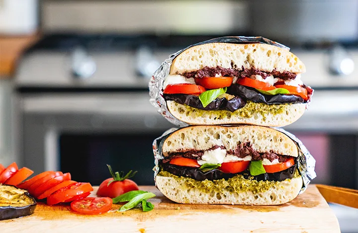 Tomato & Grilled Eggplant Stacked Sandwich Save Print Tomato & Grilled Eggplant Stacked Sandwich Author: A Couple Cooks Cuisine: Mediterranean Prep time: 10 mins Cook time: 20 mins Total time: ...