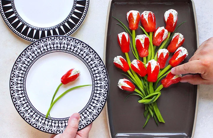 Stuffed Tomato Tulips Save Print Stuffed Tomato Tulips Author: Lunches and Littles Prep time: 30 mins Total time: 30 mins Yields: 8 Ingredients 1 package (8...