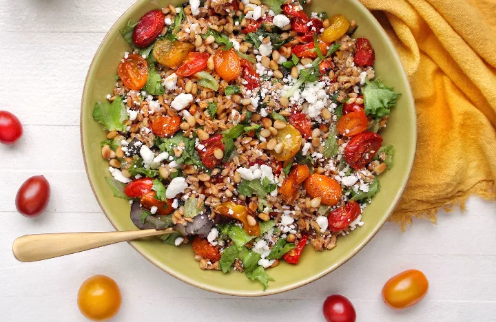 Farro Salad with Toasted Pine Nuts and Roasted Tomatoes Save Print Farro Salad with Toasted Pine Nuts and Roasted Tomatoes Author: Lunches and Littles Ingredients WHAT YOU NEED (for roasted tomatoes/remainder...
