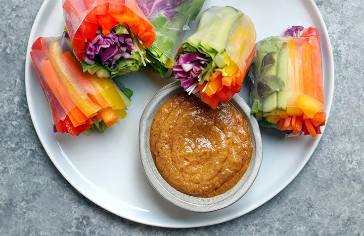 Rainbow Spring Rolls Save Print Rainbow Spring Rolls with Peanut Sauce Author: Lunches and Littles Yields: 10-12 Rolls Ingredients 1 3 count Bag of Tri-Colored...