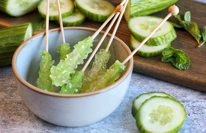 Cucumber Peppermint Rock Candy Save Print Homemade Cucumber Peppermint Rock Candy Author: Lunches and Littles Ingredients 3 cups granulated sugar, plus more for rolling 1...